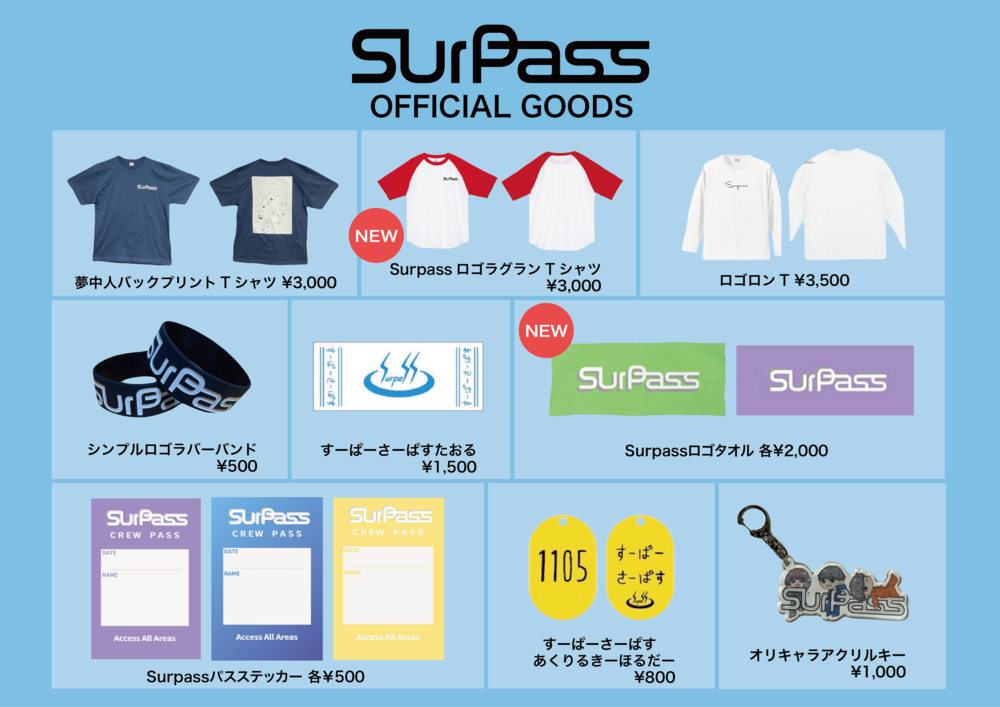 NEW GOODS 解禁‼️ NEWS Surpass インディーズバンド 下北沢 グッズ 邦ロック Surpass Official Site 2025/10/11 20:00 フォロー 💥 NEW GOODS 解禁 💥 🆕 SurpassロゴラグランTシャツ ¥3,000🆕 Surpass ロゴタオル ¥2,000 URLをコピーする 報告する